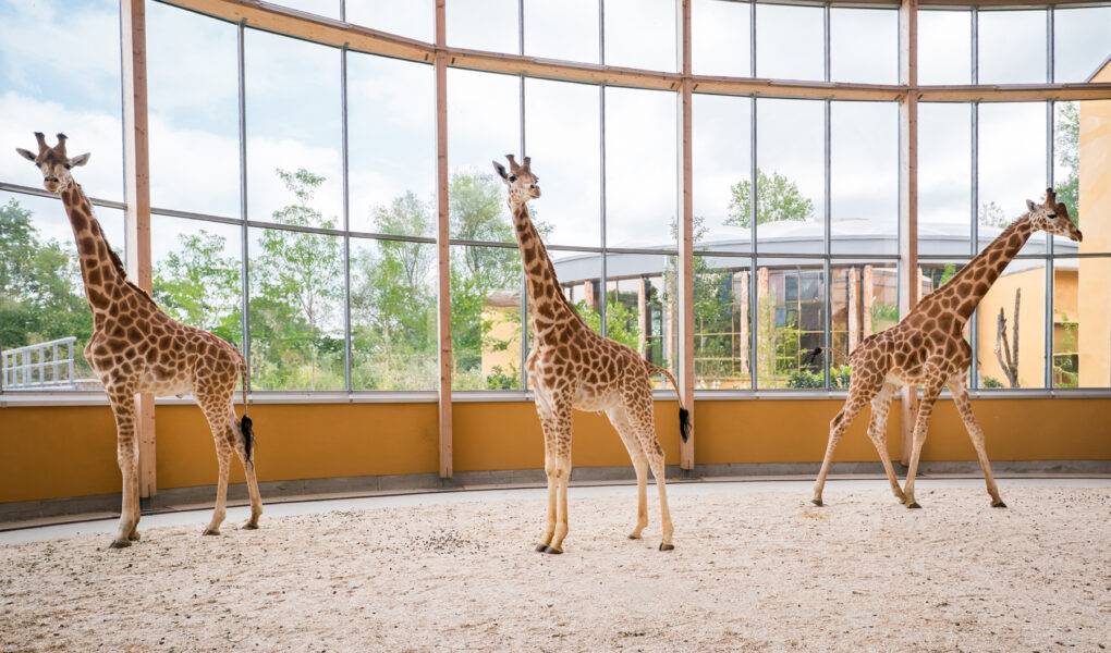 Le 17 juin 2025, deux mâles girafes de Kordofan, Zongo et Timbou, sont arrivés au Parc zoologique et botanique de Mulhouse dans un convoi spécialisé, après un voyage parfaitement organisé depuis le Zoo de La Flèche. Âgé de 2 ans et demi, Zongo pèse 488 kg. Son grand frère Timbou, âgé de 4 ans, atteint quant à lui 750 kg. Les deux girafes ont voyagé ensemble dans une remorque spécialement aménagée pour assurer leur confort et leur sécurité. Le chargement s’est déroulé tôt le matin en moins de deux heures, et l’arrivée à Mulhouse a eu lieu le soir même à 21h. À leur arrivée, Zongo et Timbou ont été accueillis dans leur nouvel habitat baptisé Horizon Afrique, le nouvel espace tant attendu du zoo, qui sera officiellement accessible au public le 1er août 2025. Les deux jeunes mâles se sont rapidement acclimatés et ont déjà pris possession de leur enclos intérieur dans le calme et la sérénité. Le 2 juillet dernier, en soirée, Zongo et Timbou ont été rejoints par un troisième mâle de la même sous-espèce. Nommé Tibiri, il est né en octobre 2023 au Bioparc de Doué-la-Fontaine, d’où il a été transféré. Les trois girafes ont rapidement été mises en contact, avec succès. Elles ont pu explorer une partie de leur enclos extérieur il y a quelques jours, bien qu’elles restent pour l’instant à l’abri des regards du public jusqu’à l’ouverture officielle d’Horizon Afrique.
