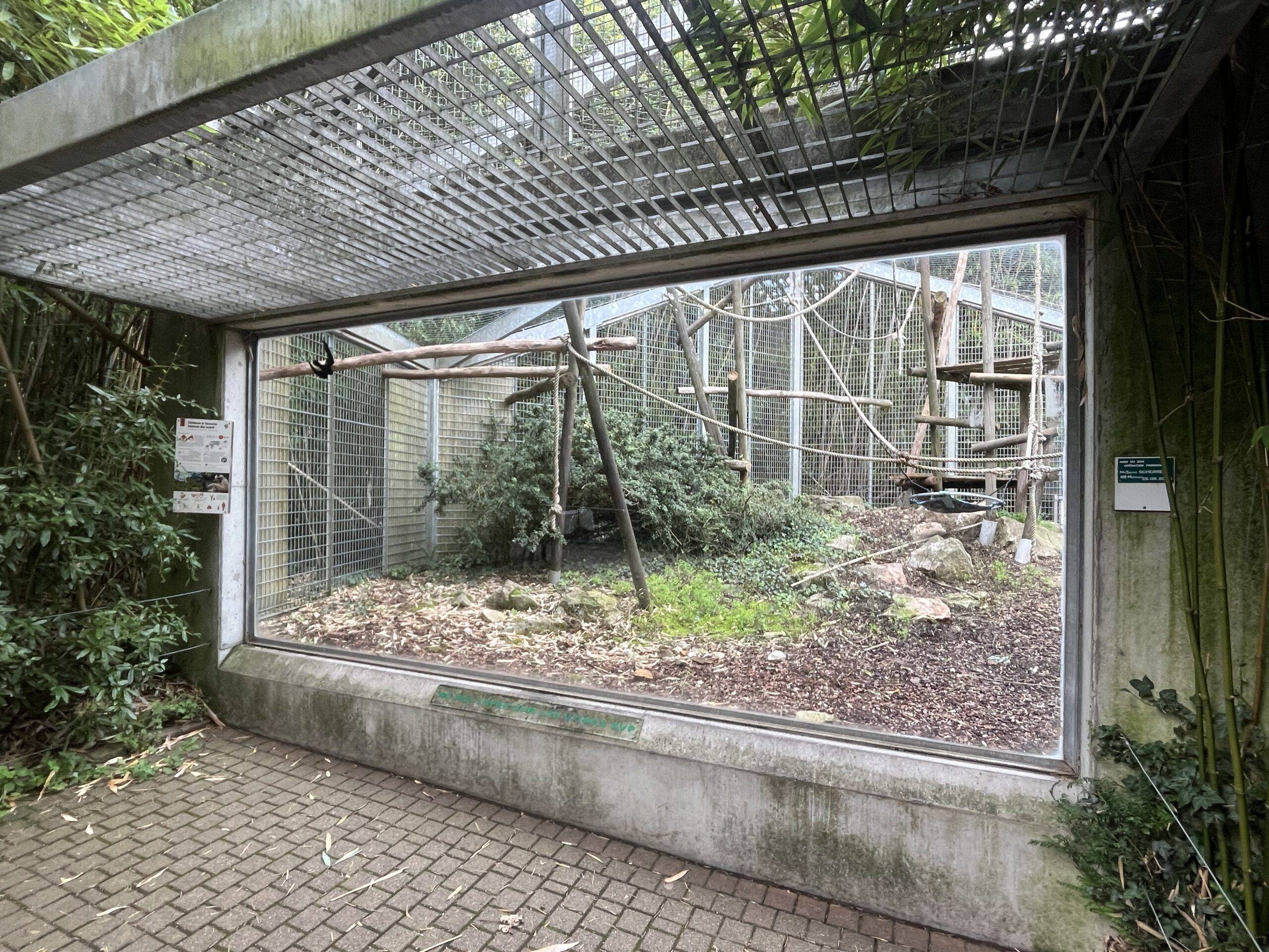 Volière Gibbon à favoris blancs du sudPDV vitré Gibbon à favoris blancs du sudIntérieur volière Gibbon à favoris blancs du sudGibbon à favoris blanc du sudVolière Gibbon à favoris blancs du nordIntérieur volière Gibbon à favoris blancs du nordEnclos Panda roux, loutre cendrée et cerf huppéPDV vitré 1 Panda roux, loutre cendrée et cerf huppéPDV vitré 2 Panda roux, loutre cendrée et cerf huppéBassin Loutre cendréeIntérieur enclos Panda roux, loutre cendrée et cerf huppéLoge intérieure Loutre cendréeBâtiment Panda roux, loutre cendrée et cerf huppéLes 3 espèces sur la même photo !Loutres naines d’Asie Enclos Vautour moine et moutonIntérieur enclos Vautour moine 1/3Intérieur enclos Vautour moine 2/3Intérieur enclos Vautour moine 3/3Vautour moine sans habit.Enclos videEnclos Cerf du Prince AlfredPDV ouvert Cerf du Prince AlfredIntérieur enclos Cerf du Prince AlfredCerf du prince AlfredBâtiment Tapir malaisLoges intérieures vitrées Tapir malaisLoges intérieures Tapir malaisEnclos Tapir malais et Macaque noir à crêtePDV vitré Tapir malais et Macaque noir à crêteIntérieur enclos Tapir malais 1/3Intérieur enclos Tapir malais 2/3Intérieur enclos Tapir malais 3/3Tapir malais