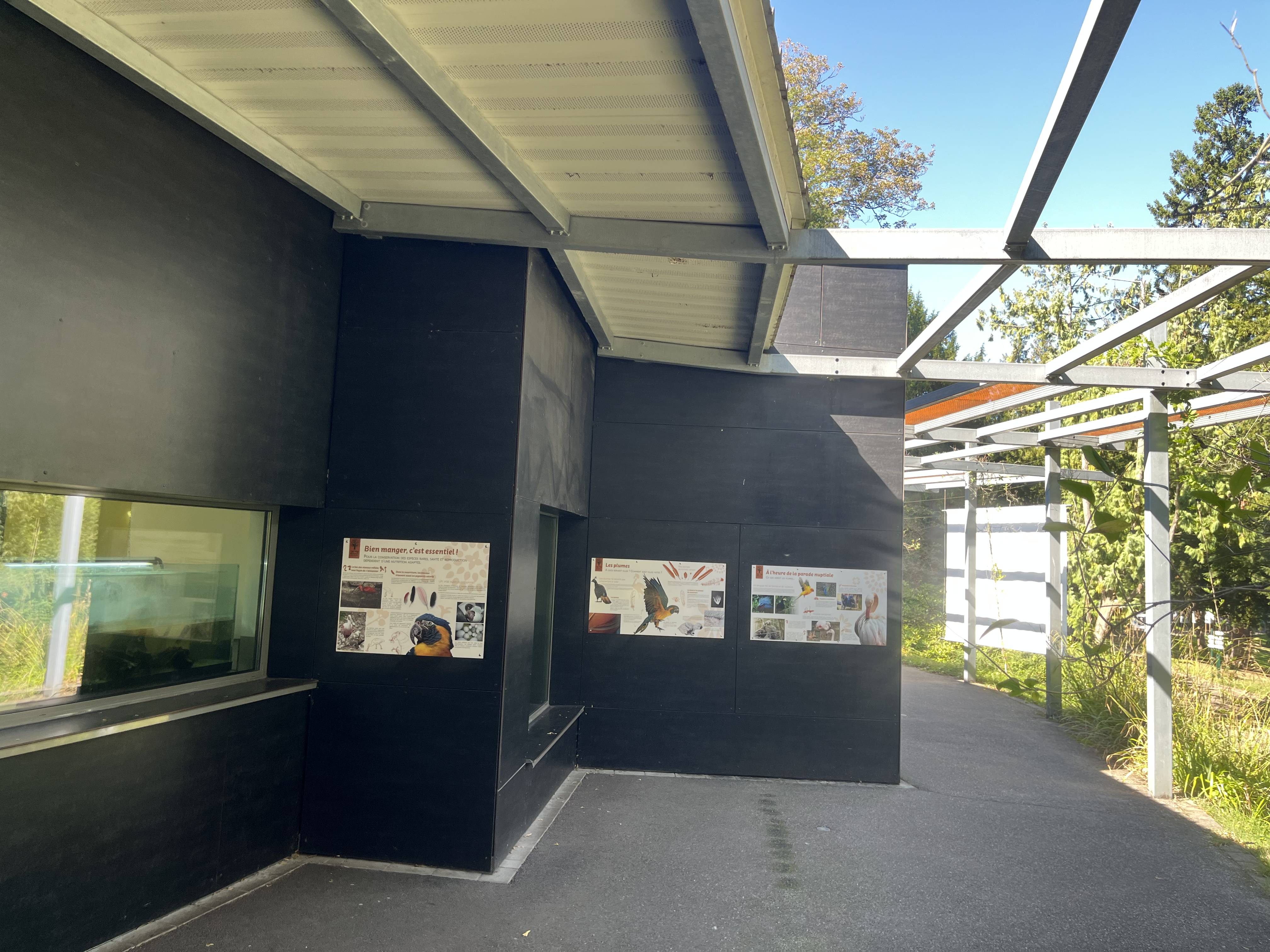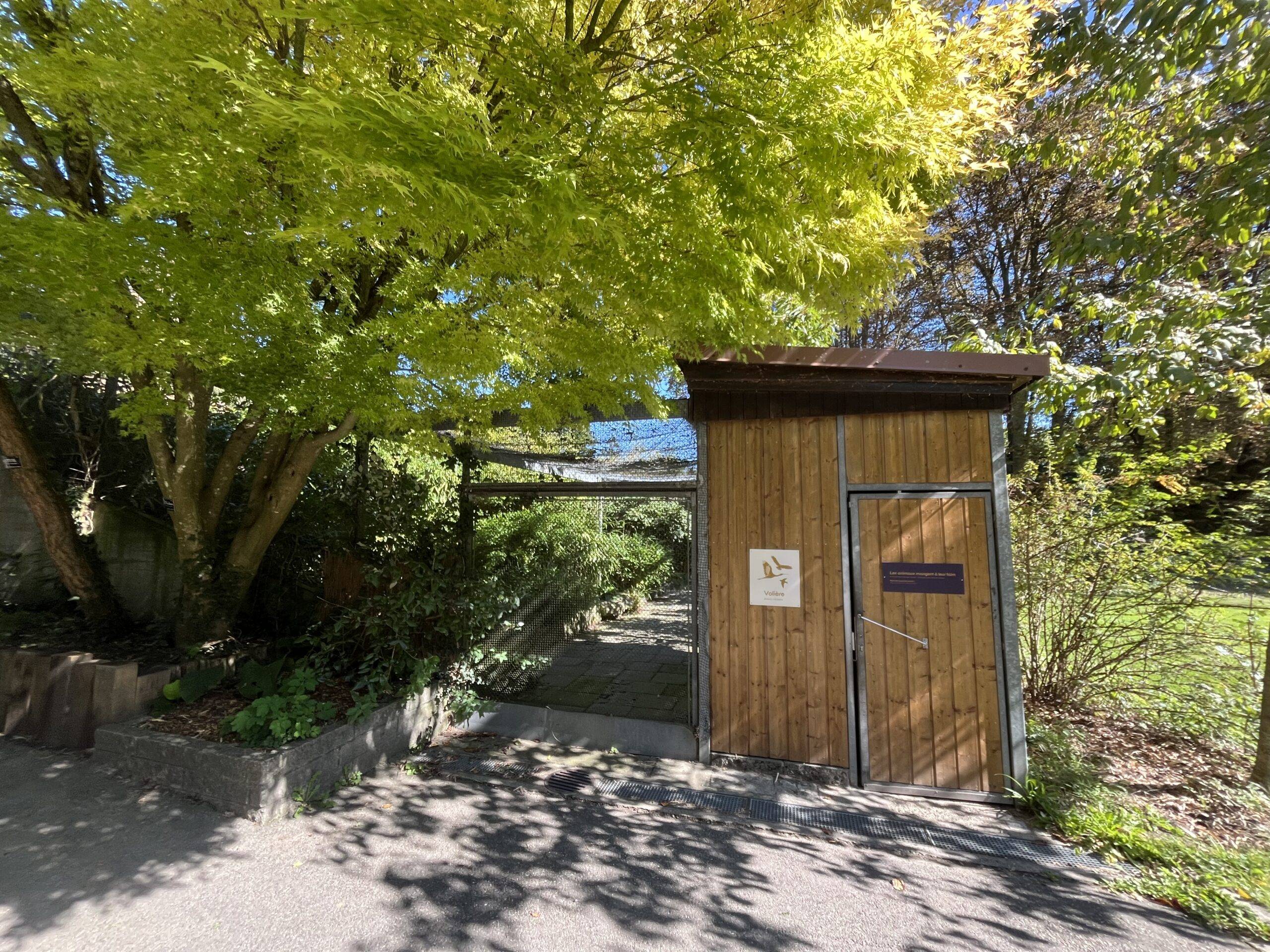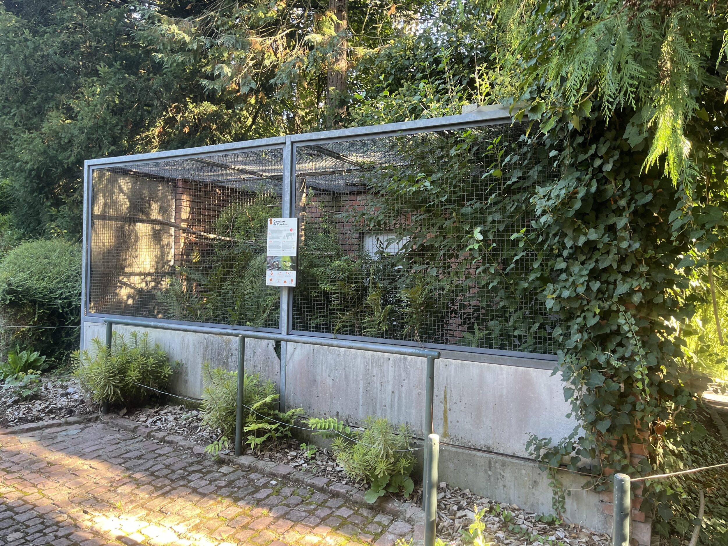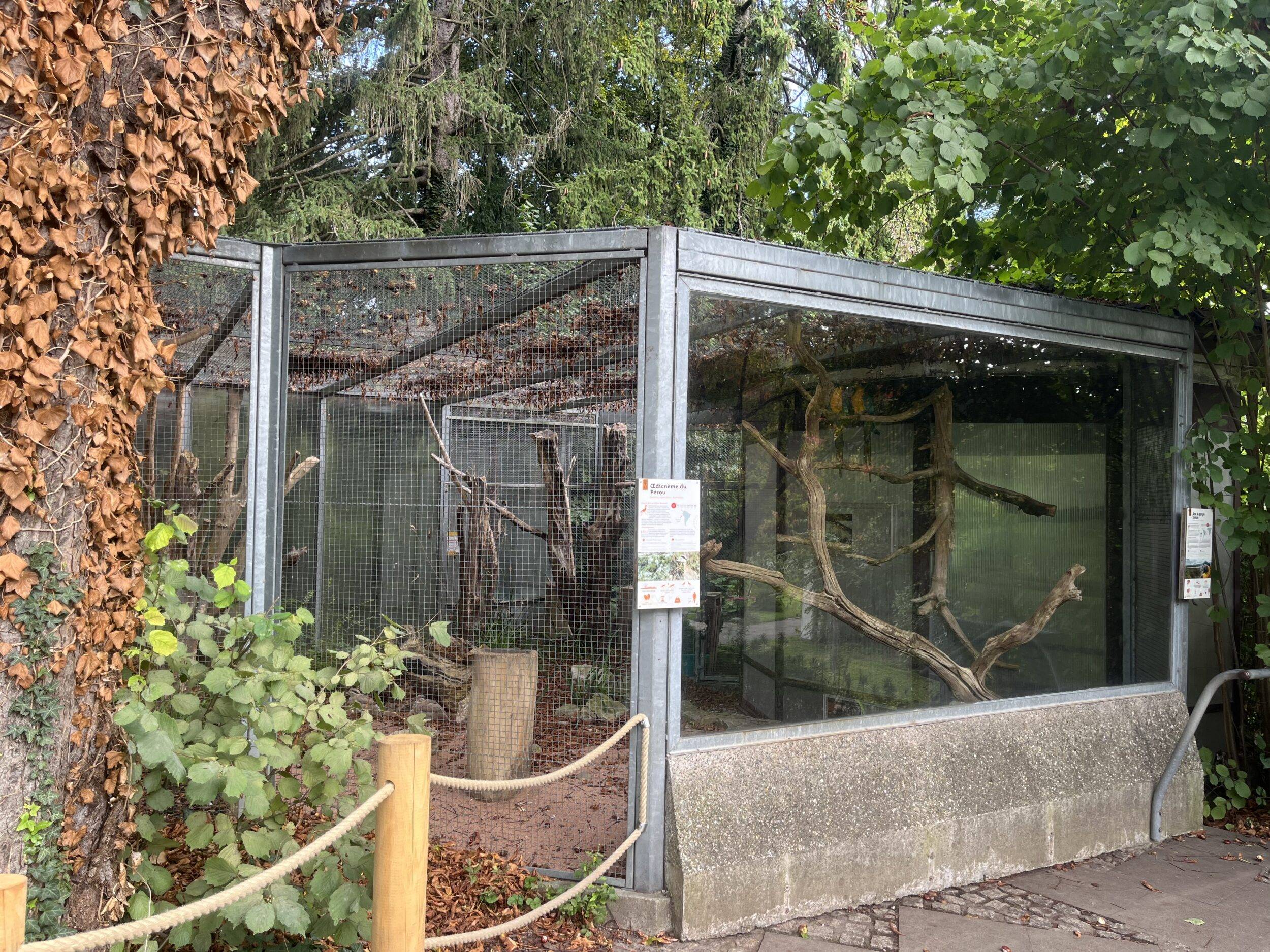 Entrée 1 Grande volièreIntérieur 1 Grande volière 1/2Zone 1 : Dendrocygne veuf, Dendrocygne fauve et Faisan du VietnamIntérieur 1 Grande volière 2/2Zone 1 bis : Ibis rouge et Spatule roseIntérieur 2 Grande volièreZone 2 : Pigeon rose + AnatidésIntérieur 3 Grande volièreZone 3 : Ibis chauve, Vautour percnoptère et Cistude d’EuropeEntrée 2 Grande volièreIbis rouges et Spatules rosesIbis chauveVolière Œdicnème bridé 1/3Volière Œdicnème bridé 2/3Volière Œdicnème bridé 3/3Œdicnème bridéVolière Ibis huppé, Perruche cornue et Touraco de Fischer 1/3Volière Ibis huppé, Perruche cornue et Touraco de Fischer 2/3Volière Ibis huppé, Perruche cornue et Touraco de Fischer 3/3Volière 2 Garrulaxe de Courtois 1/2Volière 2 Garrulaxe de Courtois 2/2