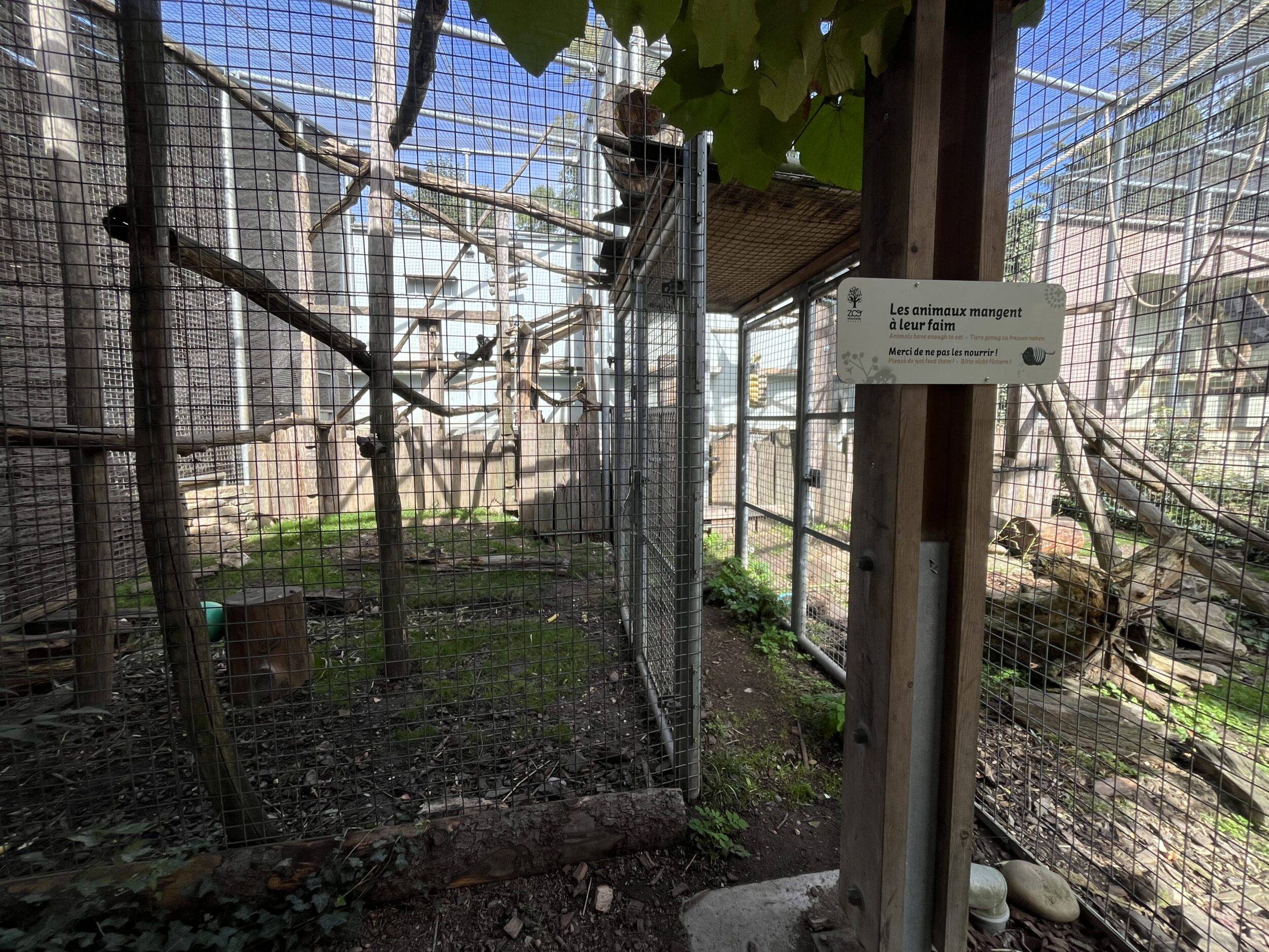 Enclos Vigogne et Nandou d’AmériquePDV 1 ouvert Vigogne et Nandou d’AmériqueIntérieur enclos Vigogne et Nandou d’AmériqueBâtiment Vigogne et Nandou d’AmériquePDV 2 ouvert Vigogne et Nandou d’AmériqueVigogneEnclos Saïmiri à tête noire 1/2Enclos Saïmiri à tête noire 2/2Intérieur enclos Saïmiri à tête noire 1/3Intérieur enclos Saïmiri à tête noire 2/3Intérieur enclos Saïmiri à tête noire 3/3Saïmiri à tête noireVers le bâtiment « Singerie »Bâtiment « Singerie » / terrariums malgachesIntérieur bâtiment « Singerie »PDV vitré Atèle de ColombieVolière Atèle de ColombieLoge intérieure Atèle de ColombieLoge intérieure Atèle de ColombieAtèles de ColombieTerrarium vide (Ex Crocodile nain)Loge intérieure vitrée 1 Cercopithèque de l’HoestLoge intérieure vitrée 1 Cercopithèque de l’HoestLoge intérieure vitrée 2 Cercopithèque de l’HoestLoge intérieure vitrée 2 Cercopithèque de l’HoestLoge intérieure vitrée 3 Cercopithèque de l’HoestLoge intérieure vitrée 4 Cercopithèque de l’HoestLoge intérieure vitrée 5 Cercopithèque de l’HoestLoge intérieure vitrée 5 Cercopithèque de l’HoestVolière 1 Cercopithèque de l’HoestVolière 1 Cercopithèque de l’HoestVolière 2 Cercopithèque de l’HoestVolière 3 Cercopithèque de l’HoestVolière 3 Cercopithèque de l’HoestVolière 4 Cercopithèque de l’Hoest 1/3Volière 4 Cercopithèque de l’Hoest 2/3Volière 4 Cercopithèque de l’Hoest 3/3Volière 1 Capucin à poitrine jauneVolière 1 Capucin à poitrine jauneVolière 2 Capucin à poitrine jaune 1/3Volière 2 Capucin à poitrine jaune 2/3Volière 2 Capucin à poitrine jaune 3/3Loge intérieure 1 Capucin à poitrine jaune 1/2Loge intérieure 1 Capucin à poitrine jaune 2/2Loge intérieure 2 Capucin à poitrine jaune 1/2Loge intérieure 2 Capucin à poitrine jaune 2/2Enclos intérieur Tamarin pinchéCuisine