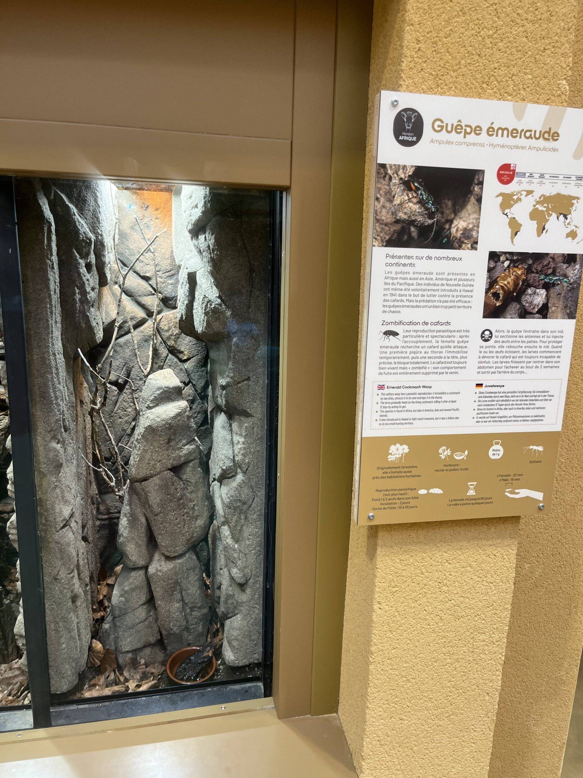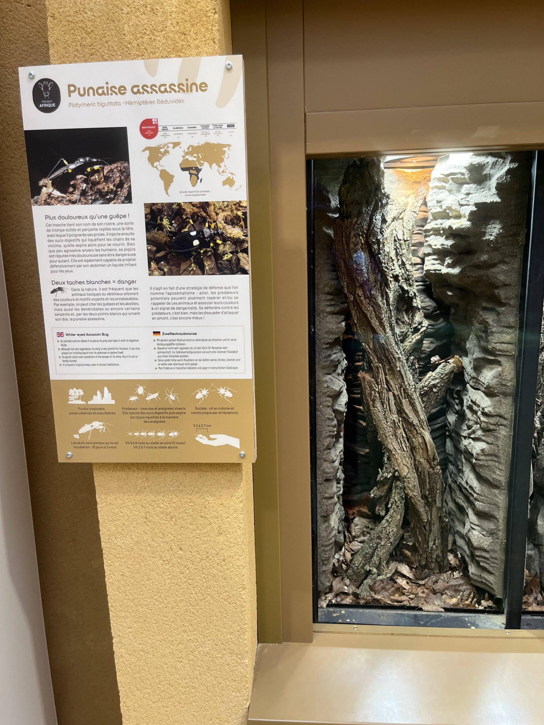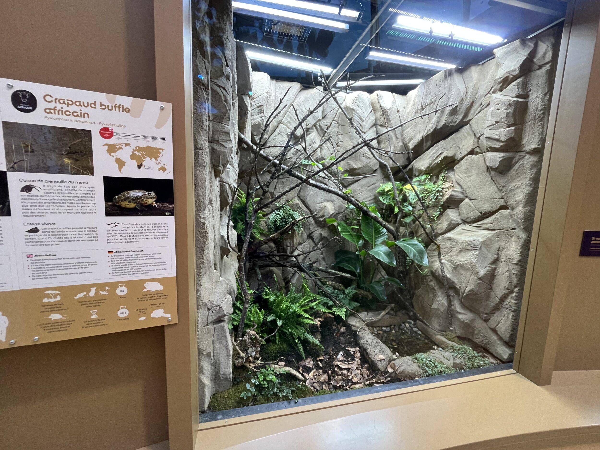 Entrée 1 du bâtiment des GirafesTerrarium CaméléonTerrarium Guêpe émeraude 1/2Terrarium Guêpe émeraude 2/2Terrarium Punaise assassine 1/2Terrarium Punaise assassine 2/2Terrarium Caméléon de Jackson 1/2Terrarium Caméléon de Jackson 2/2Caméléon de Jackson Terrarium Crapaud buffle africain 1/2Terrarium Crapaud buffle africain 2/2Terrarium Lézard vert à ventre caréné 1/2Terrarium Lézard vert à ventre caréné 2/2Terrarium Vipère des feuillages 1/2Terrarium Vipère des feuillages 2/2Terrarium Vipère rhinocéros 1/2Terrarium Vipère rhinocéros 2/2Vipère rhinocéros Aquarium central 1/3Aquarium central 2/3Aquarium central 3/3Dipneuste africainTerrarium Python de Seba 1/2Terrarium Python de Seba 2/2Python de SebaTerrarium Macroscélide de Peters 1/2Terrarium Macroscélide de Peters 2/2Macroscélide de PetersTerrarium Coléoptère flamboyant 1/2Terrarium Coléoptère flamboyant 2/2Terrarium Mygale bleue de Socotra 1/2Terrarium Mygale bleue de Socotra 2/2Terrarium Scorpion empereur et Néphile dorée 1/2Terrarium Scorpion empereur et Néphile dorée 2/2